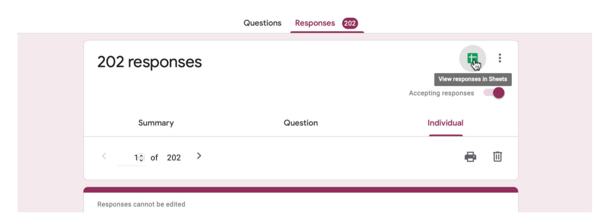 #3 OPTIONAL is the link that you save for yourself to view all the Google Form responses on a Google Sheet.2. Click "Responses"