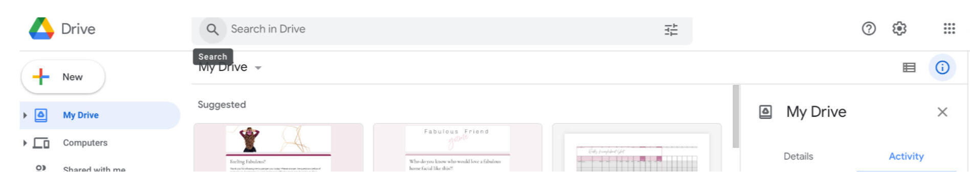 4. You can search in the search tab for the name of the Google Form you're looking for. You should also be able to locate it in your "Recommended" section just below "My Drive"