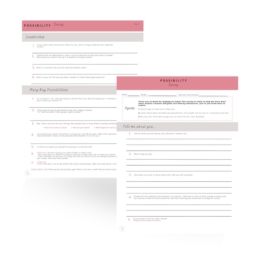 ▪️ 2 page: Possibility Survey (for 1 on 1 sharing appointment)