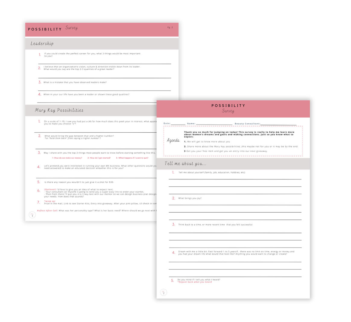 ▪️ 2 page: Possibility Survey (for 1 on 1 sharing appointment)